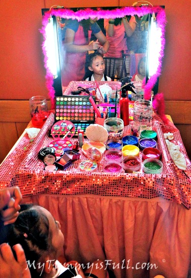 This party being princess themed, had a fab salon kiddie salon makeover booth! I just know this is what I’ll opt for if I had a daughter. So fun! 🙂