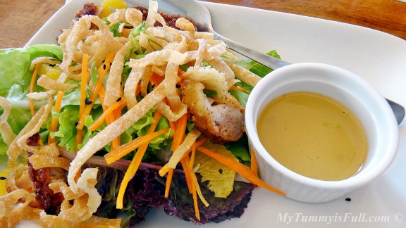 Not just because I’m a sucker for salads with fried wonton strips, but the mix of the breaded chicken slices, oranges and carrots in bed of greens dressed in my sesame dressing is made to perfection. I can honestly eat this the whole day with no complaints.