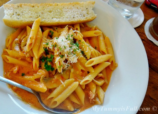 Penne Rosa & Bacon is a combo of bacon, pomodoro, and bechamel sauce sautéed with mushrooms, garlic and onions. Flavorful through and through.