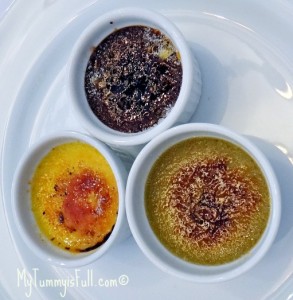 Vanilla Creme Brulee, Chocolate Creme Brulee, Green Tea Creme Brulee