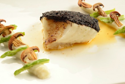 Sundried Tomato Crusted Sea Bass with Cauliflower Puree